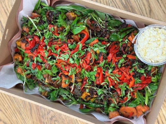 Black rice salad with Mesclun and Feta roasted vegetables and Balsamic glaze.