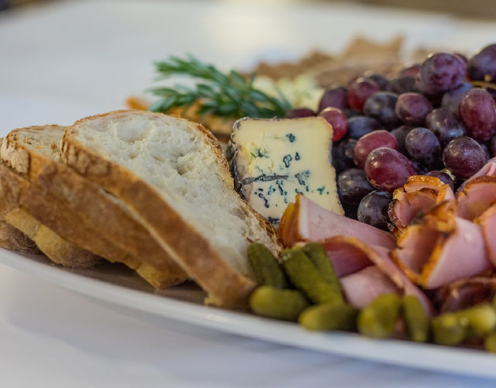 A traditional selection of local & imported cheeses and cooked deli meats, including your choice of baked Akaroa salmon, ham off the bone, roast chicken breast and medium-rare roast beef. Accompaniments include house-made hummus, crudites, chutneys, pesto, condiments such as pickles and marinated olives, semi-sundried tomatoes. Garnished with fresh grapes, freshly baked bread, and gourmet crackers.