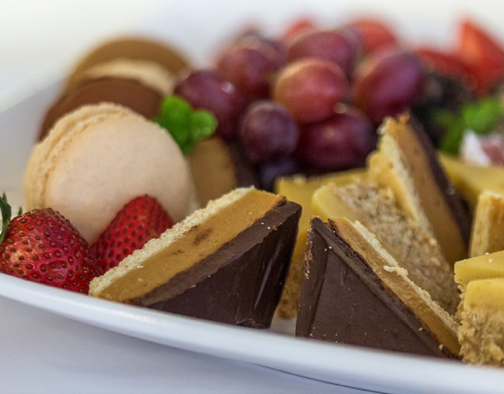A selection of house-made treats from our chefs including bite sized slices, tarts and loaf.